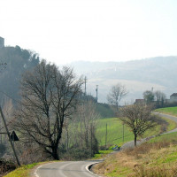 “Primadonna” incontrastata della media Val Trebbia, inconfondibile, la Pietra Parcellara domina gran parte della vista e sorprende il cicloturista ad ogni curva, cambio di direzione, ad ogni uscita dal bosco; il nostro luogo preferito. Partiamo da Niviano, strada bassa per Pieve Dugliara, poi Rivergaro; a Bellaria a destra e giù fino al bivio per Statto. Poi a sinistra, 2,5 km della salita di Pigazzano, fino al bivio per Momeliano. Si pedala tra dolci saliscendi a mezza costa, osservando dalla “panoramica” omonima la bassa pianura gonfia di caldo e smog. Noi scappiamo via veloci; al paese a sinistra una breve rampa e poi subito a destra per Rezzanello. La stradina è asfaltata per 1 km, poi diventa sterrata e ondulata sbucando a fianco della chiesa, con l’imponente castello davanti a noi. Prendiamo a sinistra il lungo rettilineo in decisa salita con pendenze toste fin dopo la curva. Si prosegue nel bosco fino a Monticello, 554 mslm, dove un altro maniero medioevale e una lapide che ricorda le lotte partigiane segnano l’inizio della parte più scenografica del giro. Rinfrescati alla fontana, con la veduta della torre di Monteventano sotto di noi, la stradina comincia ad ondeggiare sul crinale, fino ad iniziare a scendere in maniera decisa.